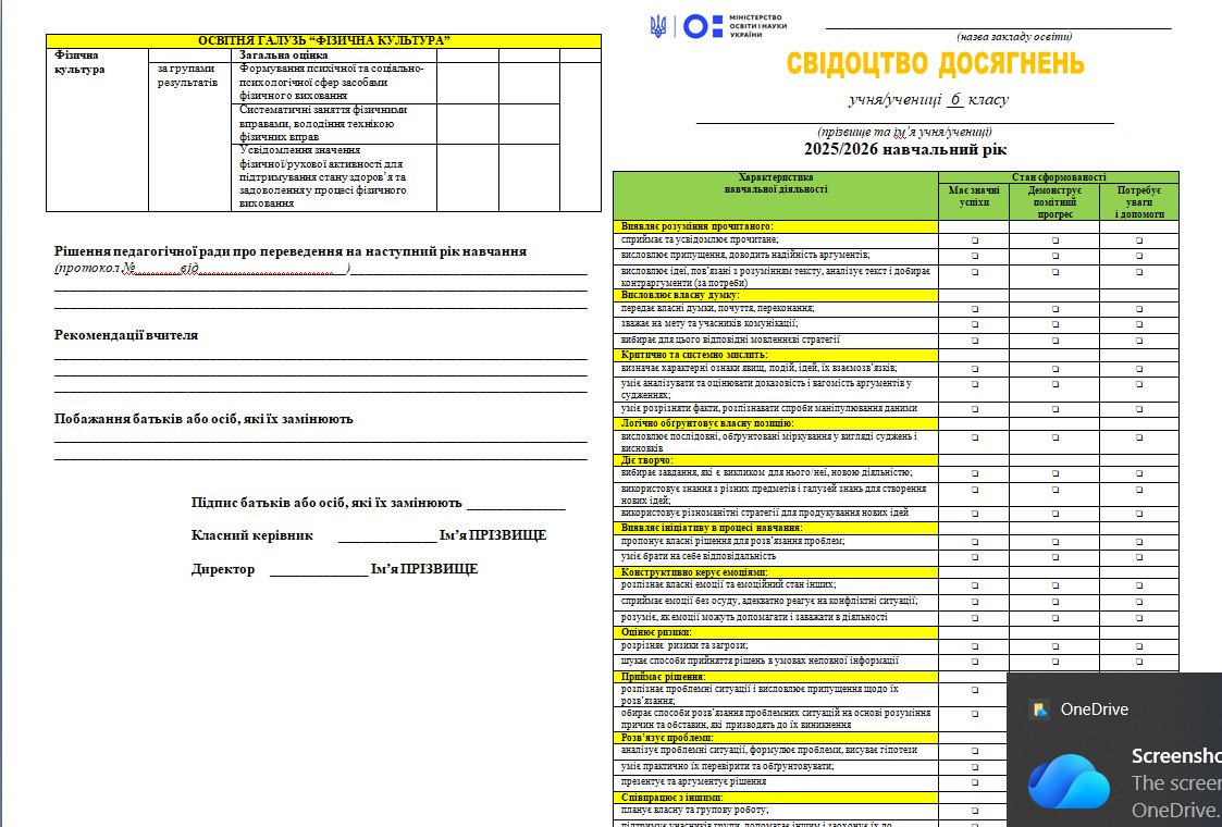 СВІДОЦТВО ДОСЯГНЕНЬ УЧНІВ 6 класу НУШ(ОНОВЛЕНЕ) ВІДПОВІДНО ДО НАКАЗУ МОН ВІД 02 СЕРПНЯ 2024Р. № 1093