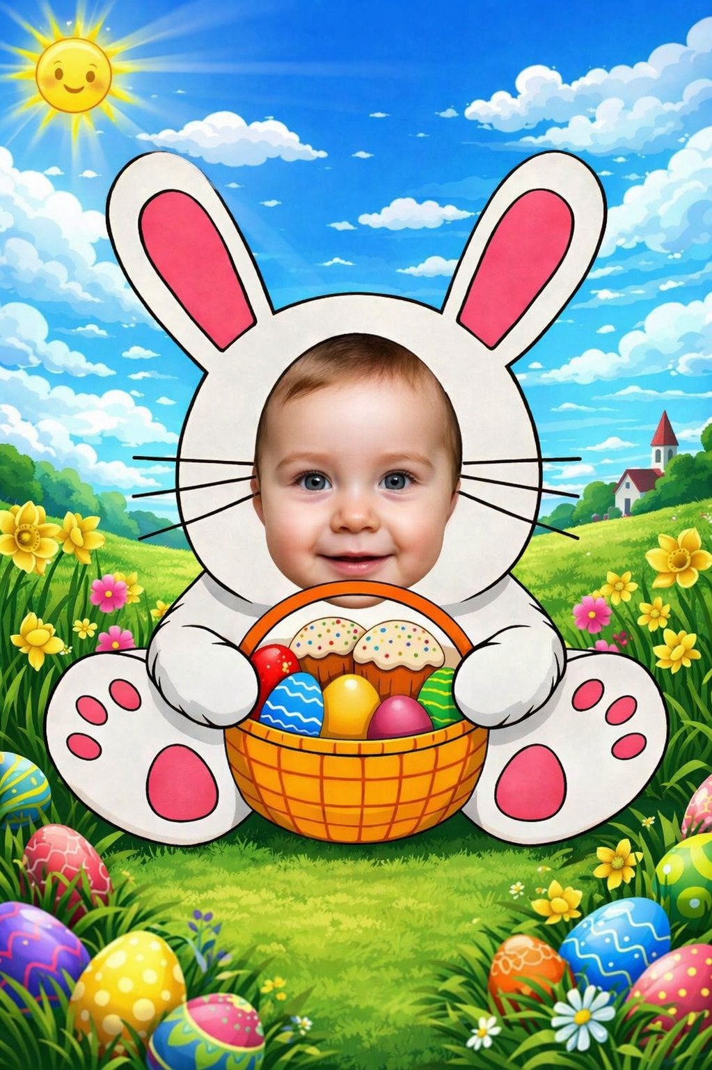 Святкова великодня фоторамка для дитячих фотосесій (Плакат А1 та шаблон для друку на А4 з 9 частин)