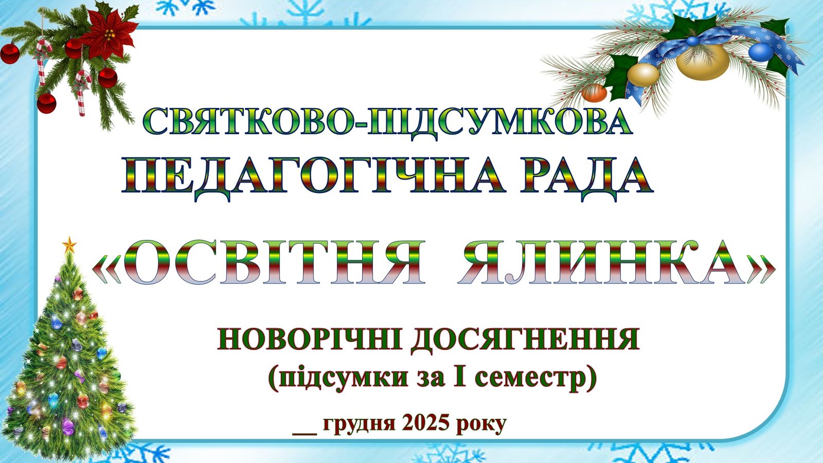 СВЯТКОВО-ПІДСУМКОВА ПЕДАГОГІЧНА РАДА. ПІДСУМКИ ЗА І СЕМЕСТР 2025-2026 НАВЧАЛЬНОГО РОКУ «ОСВІТНЯ ЯЛИНКА»