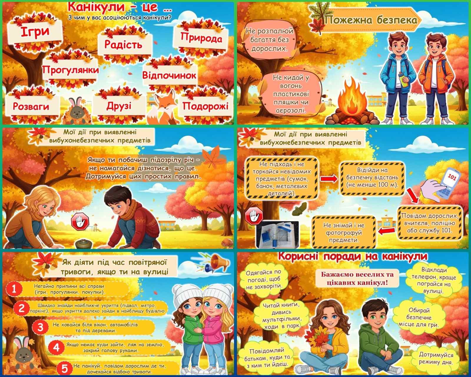 Техніка безпеки під час осінніх канікул. Цікава, анімована, яскрава презентація.