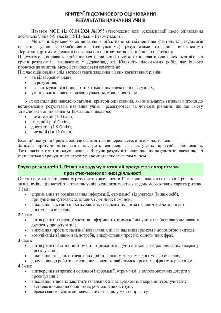 1. КРИТЕРІЇ ПІДСУМКОВОГО ОЦІНЮВАННЯ