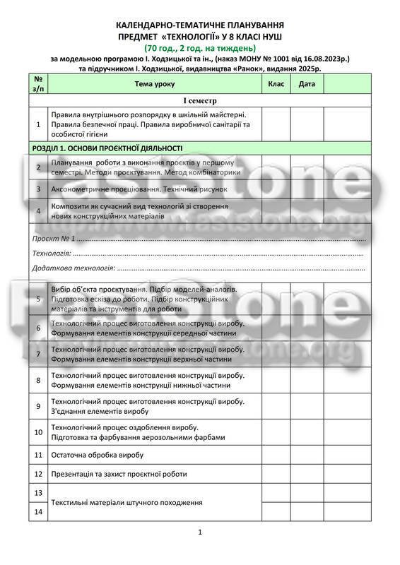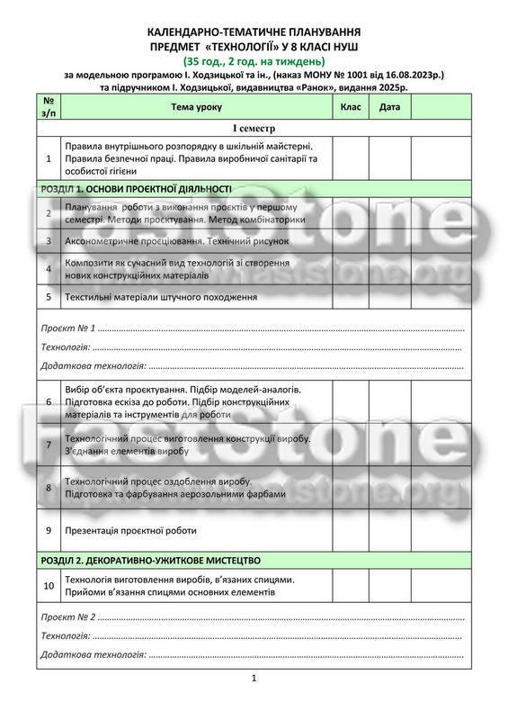 !!! ТЕХНОЛОГІЇ 8 кл НУШ 2025-2026 н.р. КТП на 35 год. і 70 год. за програмою та підручником Ходзицької (2025) + ПРЕЗЕНТАЦІЇ + КРИТЕРІЇ ОЦІНЮВАННЯ