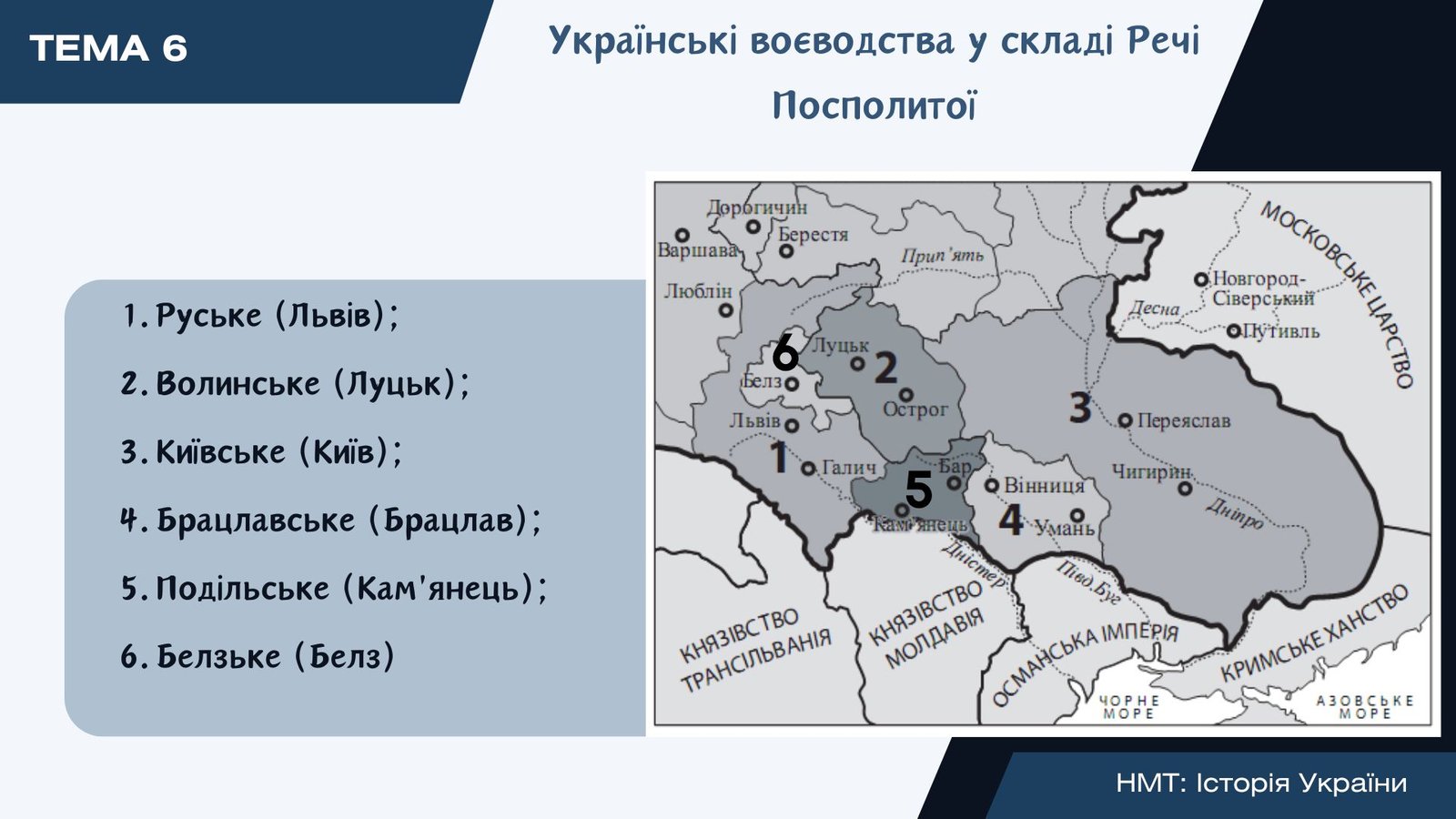 Тема 6. Українські землі у складі Речі Посполитої в другій половині 16 століття. Презентація.