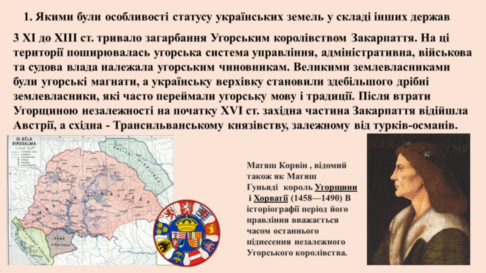 Тема уроку: “Українські землі у складі Угорщини, Молдови (Русо-Валахії), Московії”