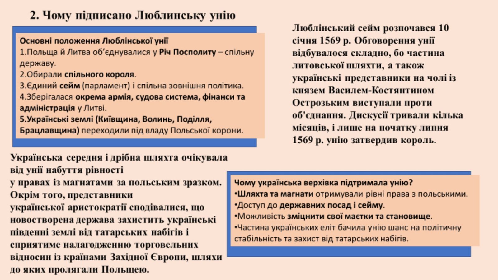 Тема 6. Українські землі у складі Речі Посполитої в другій половині 16 століття. Презентація.