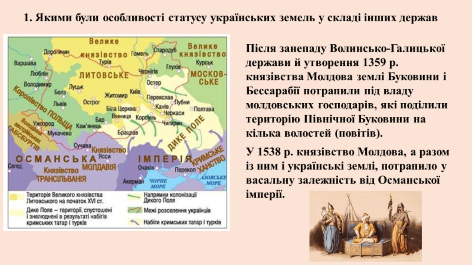 Українські землі у складі Угорщини, Молдови (Русо-Валахії), Османської імперії. Держава Феодоро. ...