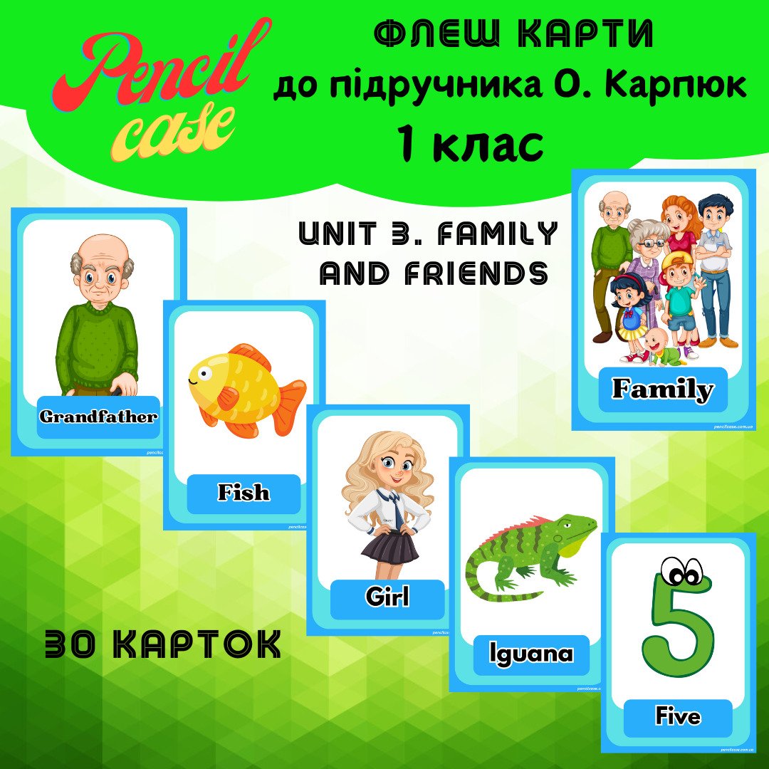 Демонстраційні картки з Unit 3. My Family (до підручника О. Карпюк, 2023)– це навчальний матеріал, розроблений для ефективного вивчення слів, пов’язаних із темою сім’ї.