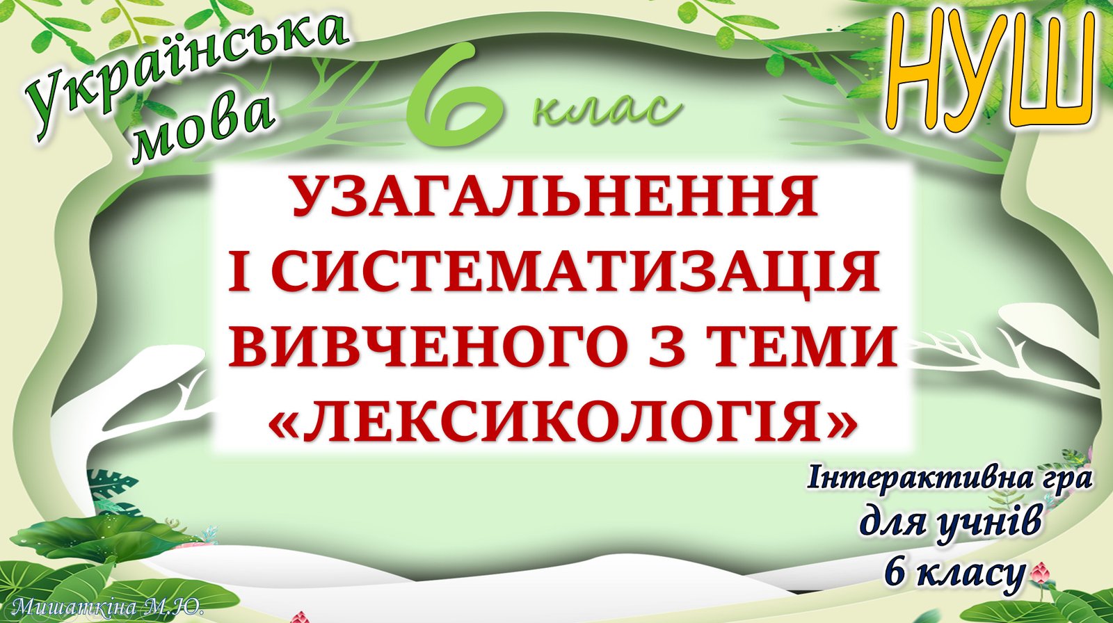 Узагальнення вивченого з теми “Лексикологія” 6 клас НУШ