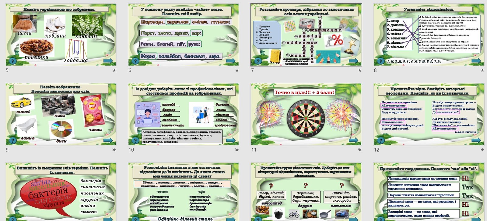 Анімована ігрова презентація до уроку узагальнення вивченого з теми “Лексикологія” (програма Заболотних, до підручників Заболотних, Авраменка). Усього 15 завдань .