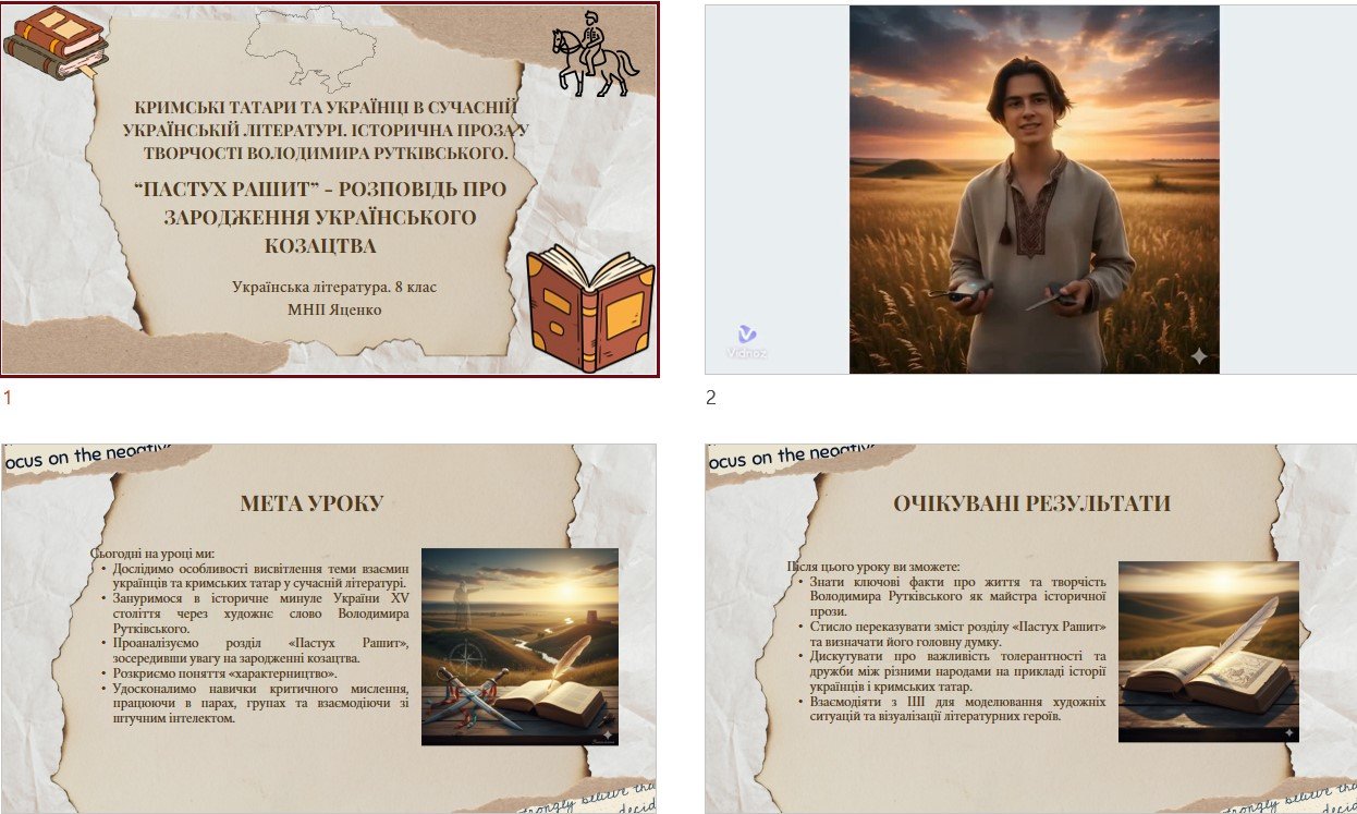 - Цифрова фішка: Вбудований практикум із ШІ. Учні використовують готові промти, щоб «оживити» героїв та розвинути критичне мислення.