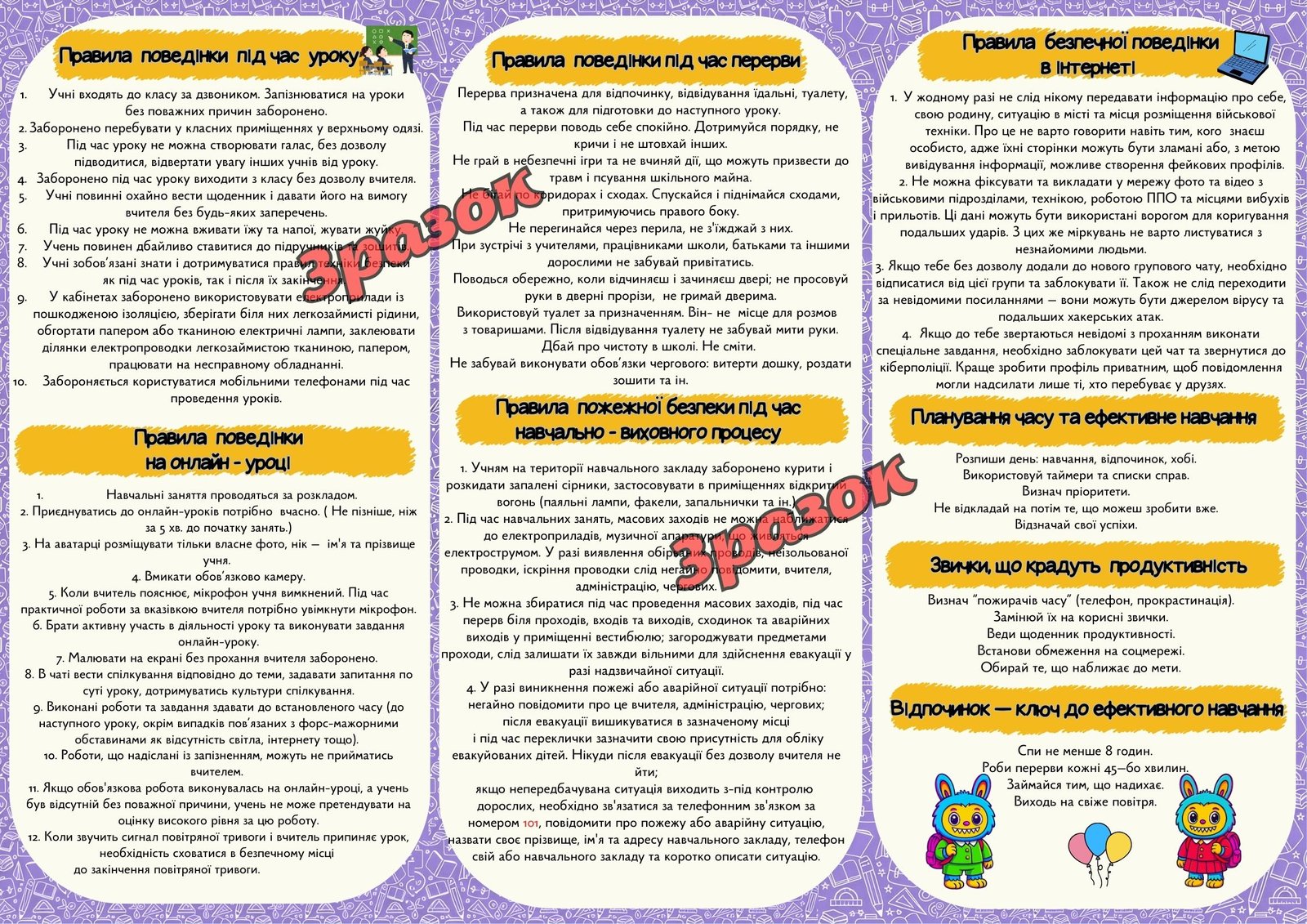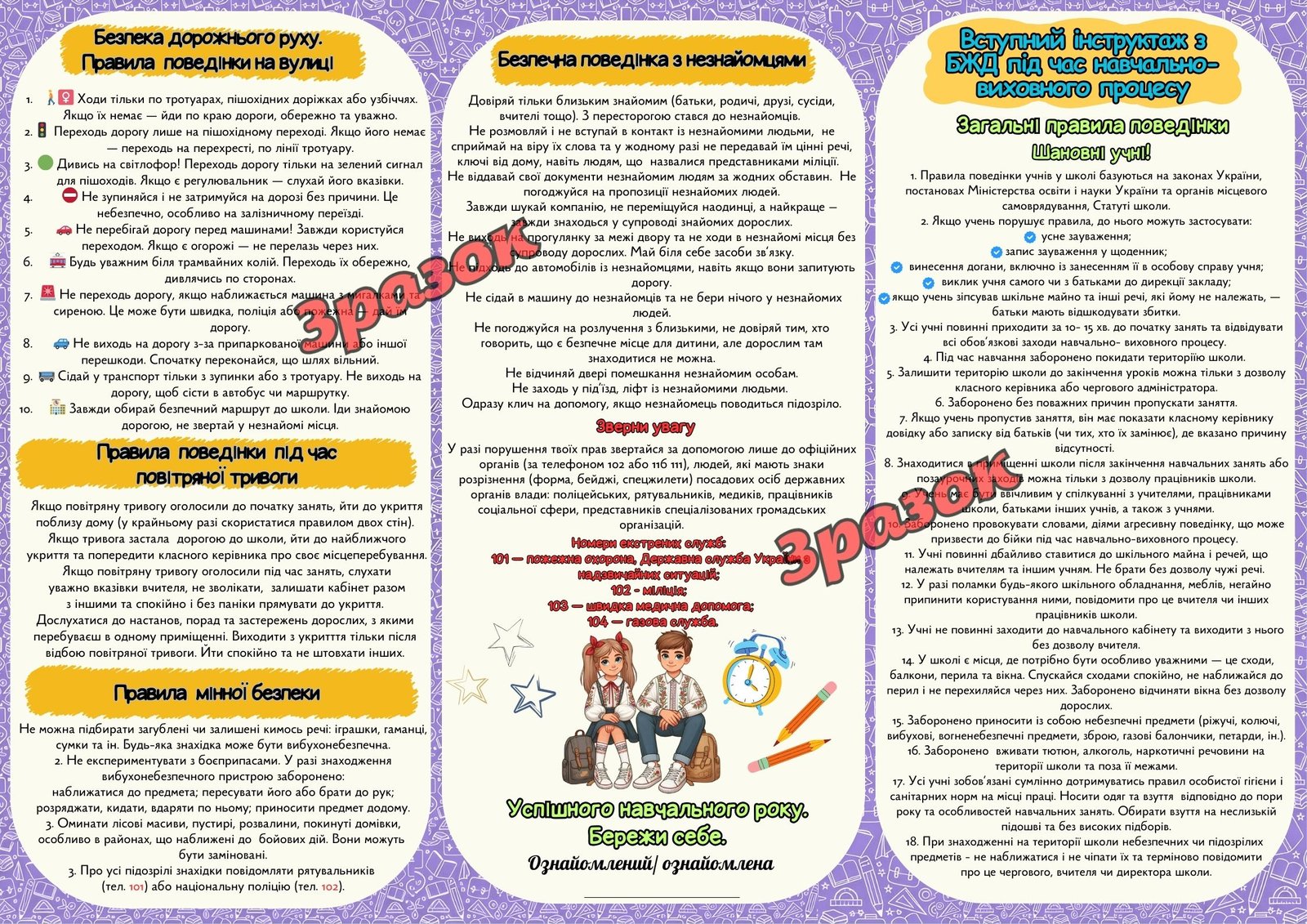 Вступний інструктаж з безпеки життєдіяльності учнів під час навчально-виховного процесу (на початок навчального року 2025-2026), БЖД