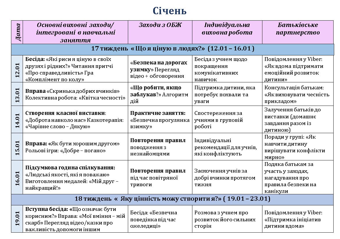 Річний план виховної роботи школи на 2024-2025 навчальний рік/План виховної роботи ЗДВР на 2024-2025