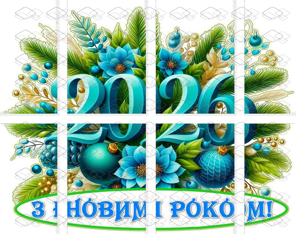 !!! З НОВИМ РОКОМ! Оформлення – чотири розтяжки в різних кольорах, кожна літера на А4 + дво...