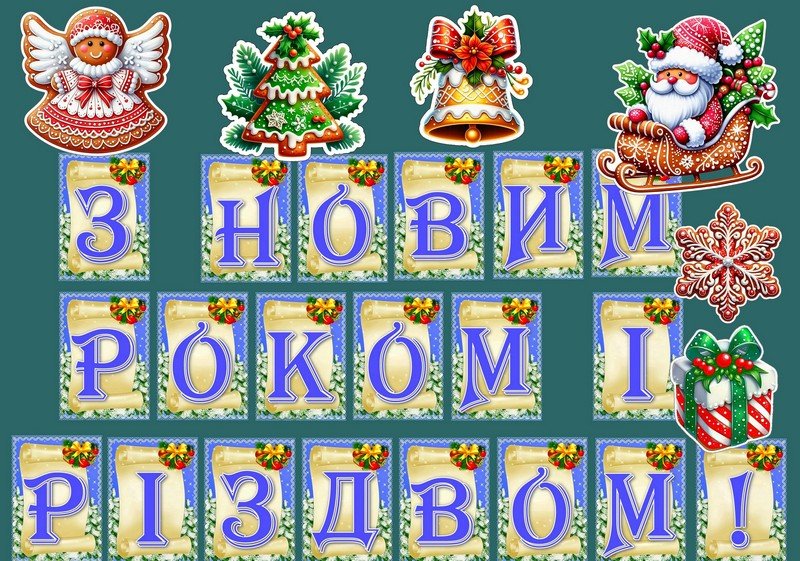 Оформлення до новорічних свят. Кожна літера – один аркуш А4. Цифри на новорічних кульках від о до 9 (2026, 2027, 2028 … “на роки”). Формат pdf зручний для друку. Висока якість елементів. Замовити i*d*e*a*l_2007@u*k*r.n*e*t (зірочки видаліть)