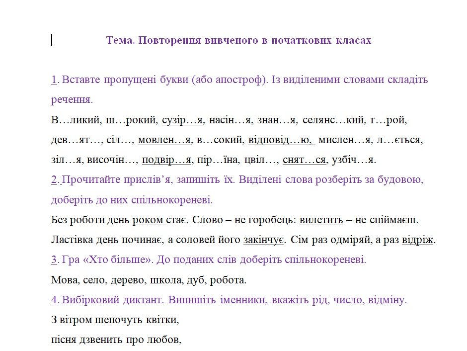 Комплексна ПР. Українська мова. 5 клас. “Повторення вивченого в початкових класах” За...