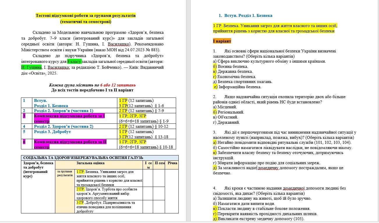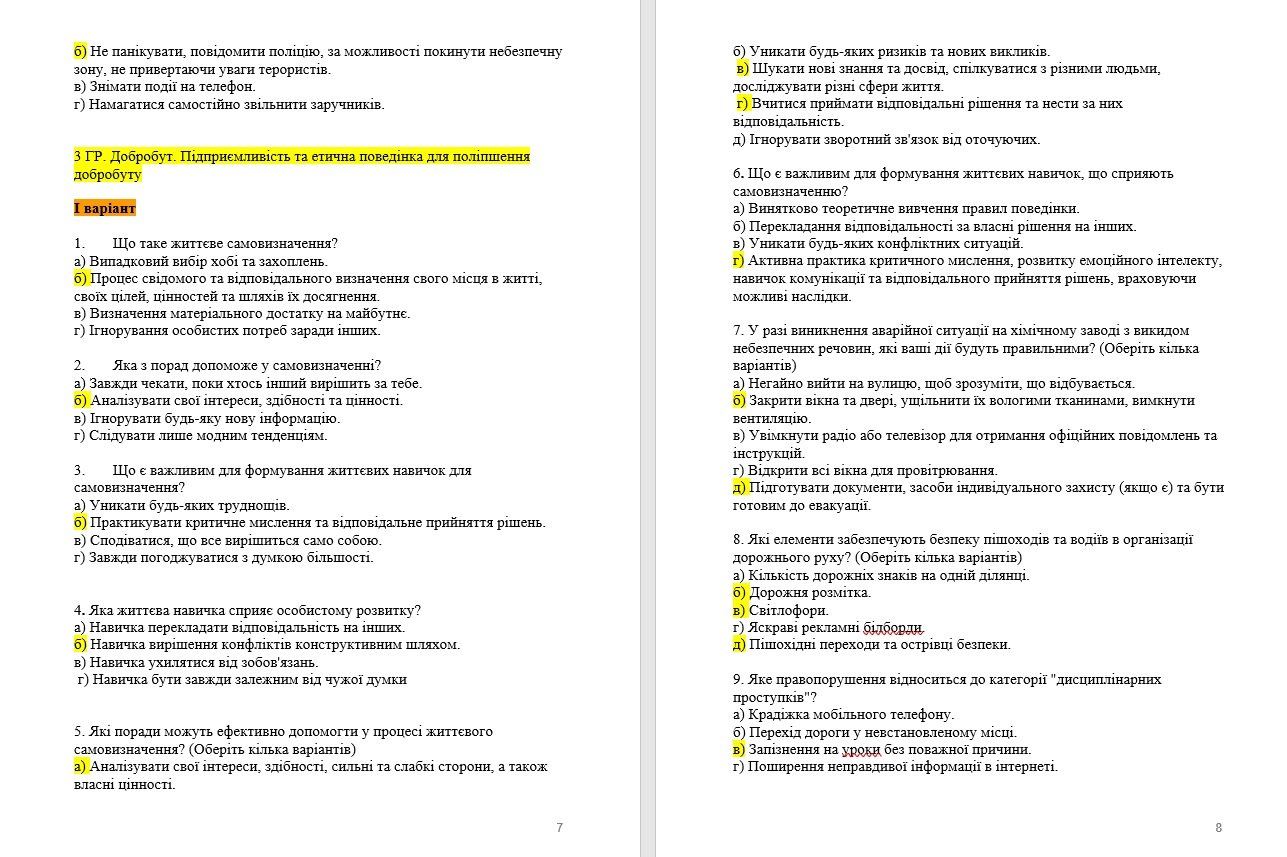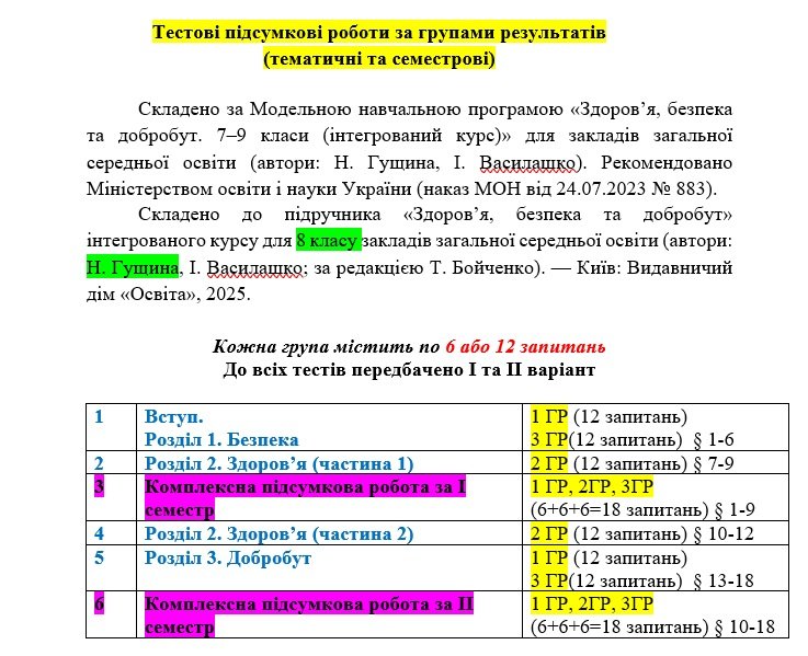 Збірник тестових завдань до підручника “Здоров’я. Безпека та Добробут” 8 клас (...
