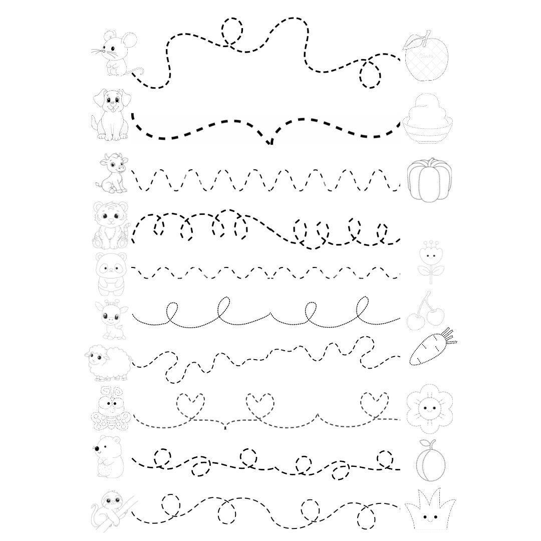 25 сторінок веселих пунктирних завдань для тренування руки та уяви.Ця збірка допоможе дитині розвинути дрібну моторику, уважність і впевненість у русі руки. Кожне завдання — це маленька пригода: лінії перетворюються на звірят, фігури, сонечка й казкові сюжети.